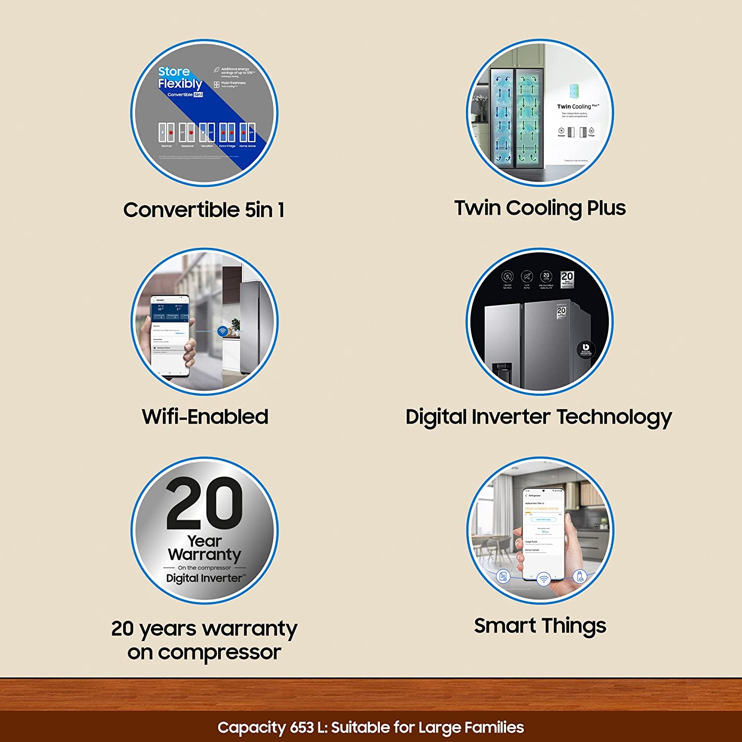 - Capacity : 653 Liters: Suitable For Families With 5 Or More Members