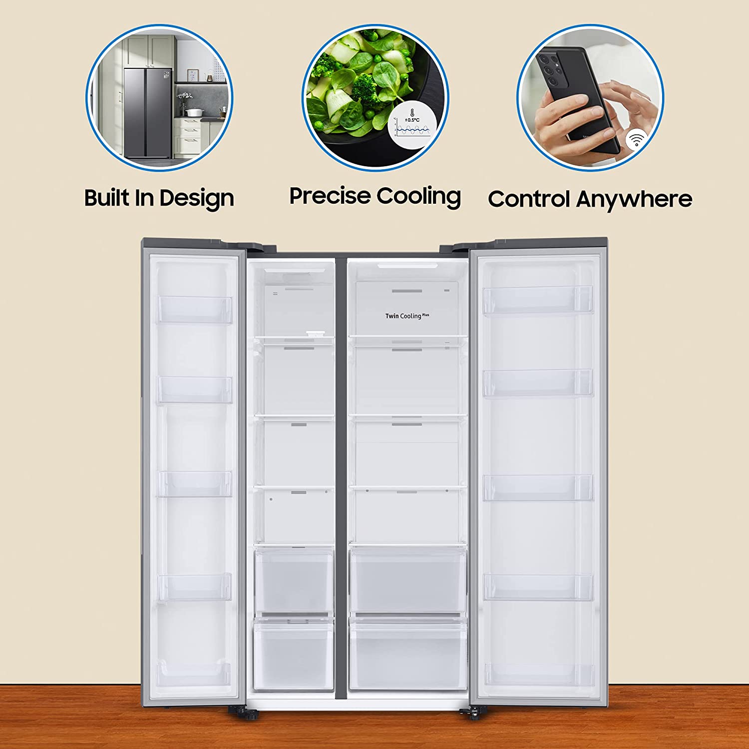 - Twin Cooling Plus : Ensures food stays fresh and moist longer. Prevents odor from mixing between compartments
