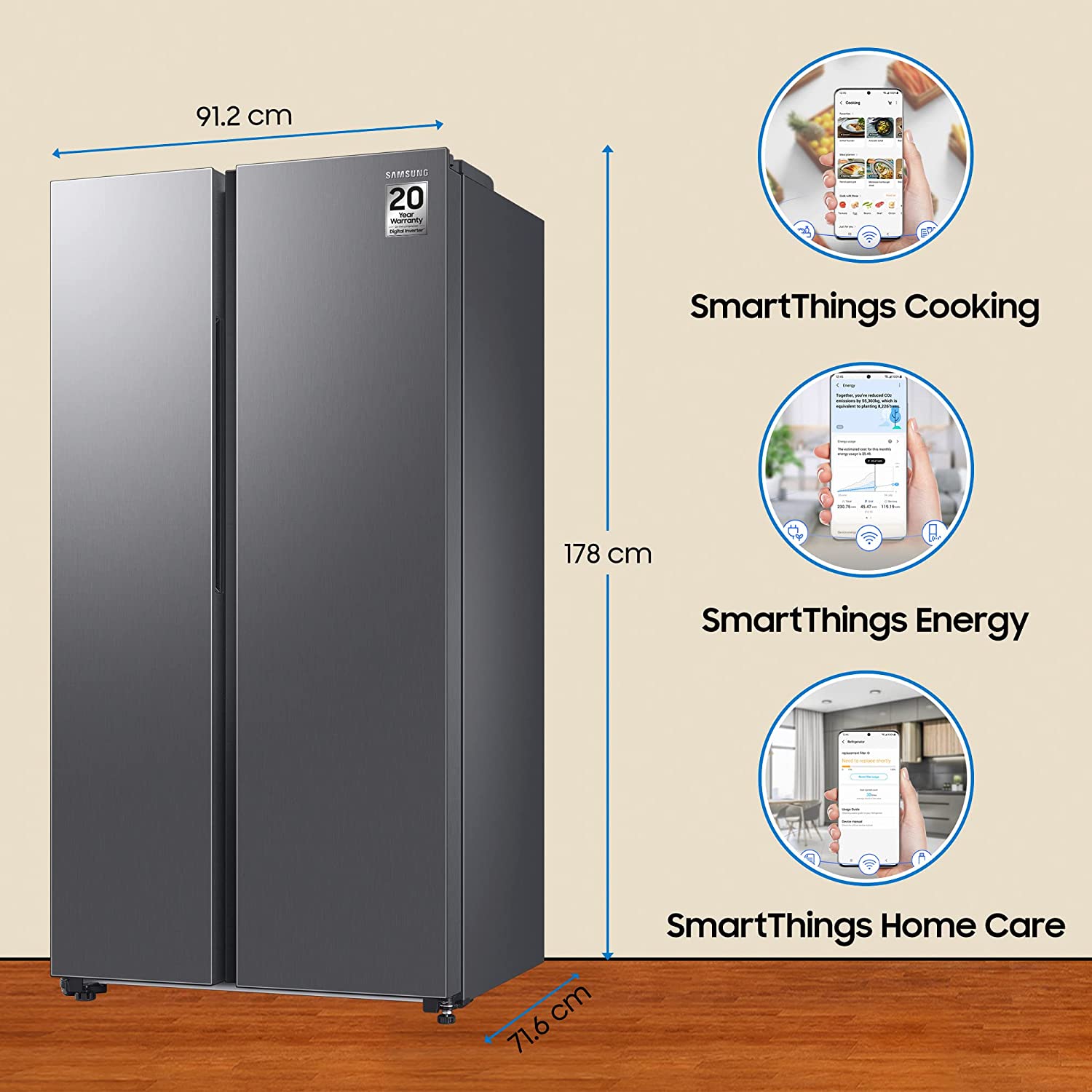 1 review for Samsung 653 L Frost Free Convertible 5In1 Digital Inverter Wi-Fi Enabled Side by Side Refrigerator (RS76CG8003S9HL, Refined Inox)